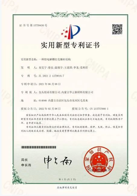 中鋁海外發(fā)展有限公司近日,包鋁5項(xiàng)新型實(shí)用技術(shù)獲得國家知識(shí)產(chǎn)權(quán)局專利授權(quán),至此公司現(xiàn)行有效專利數(shù)量達(dá)到53件,其中發(fā)明專利20件、實(shí)用新型專利30件、外觀專利3件。